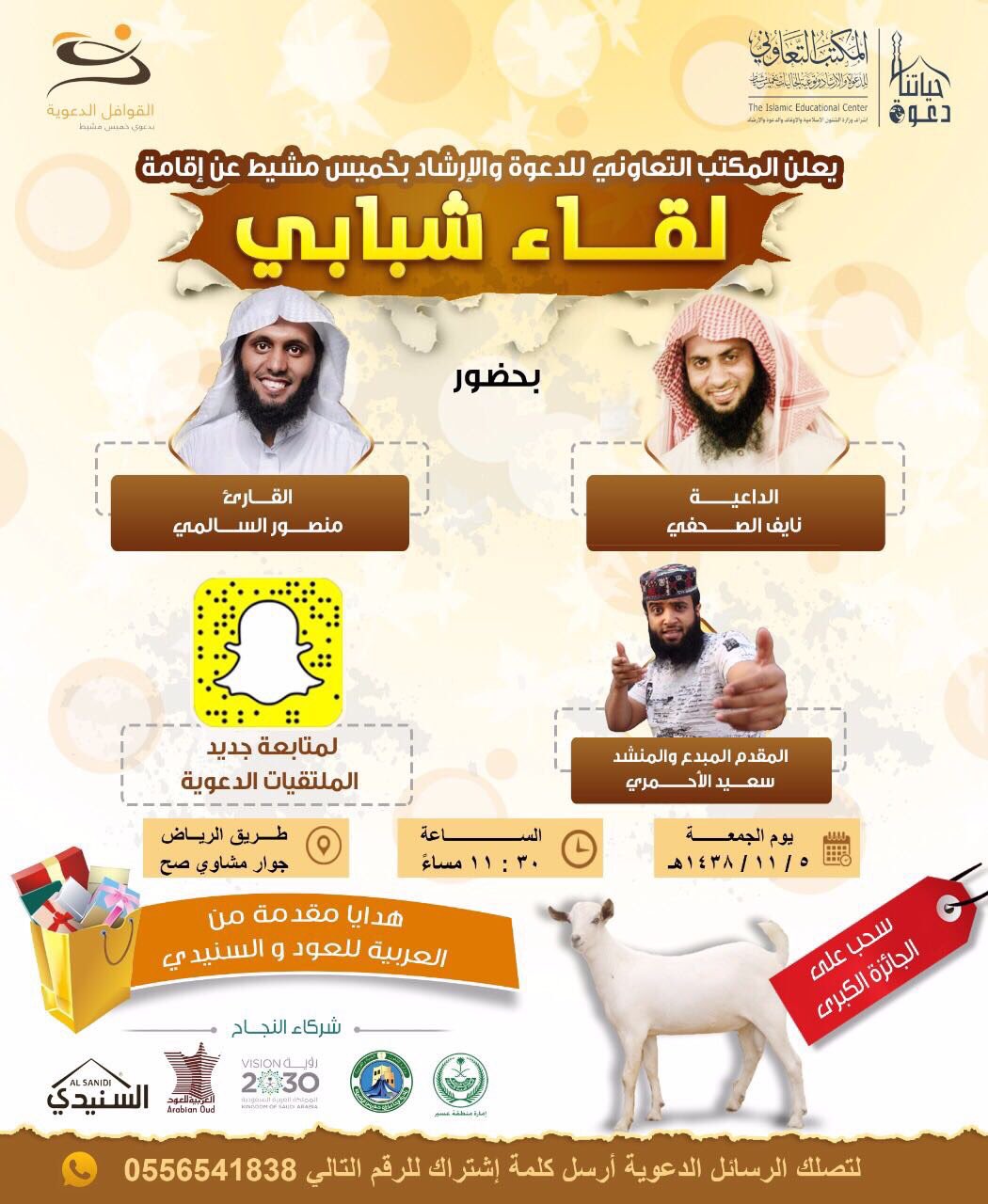 O Xrhsths أخبار خميس مشيط Sto Twitter الليلة لقاء شبابي نايف الصحفي منصور السالمي والمنشد سعيد الأحمري طريق الرياض بجوار مشاوي صح ١١ ٣٠مساء تعاوني خميس مشيط Https T Co Zpn19wxxel
