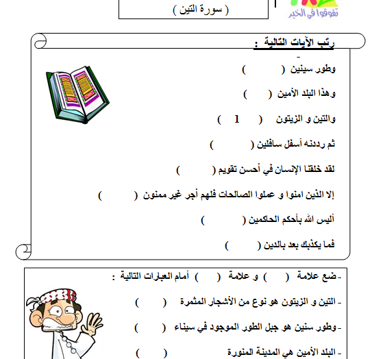 التربية الإسلامية ورقة عمل سورة التين للصف الثالث ملفاتي
